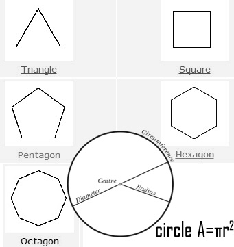 most common 2d shapes. a shape is a polygon, and can have any positive integer number of sides greater than 2 |